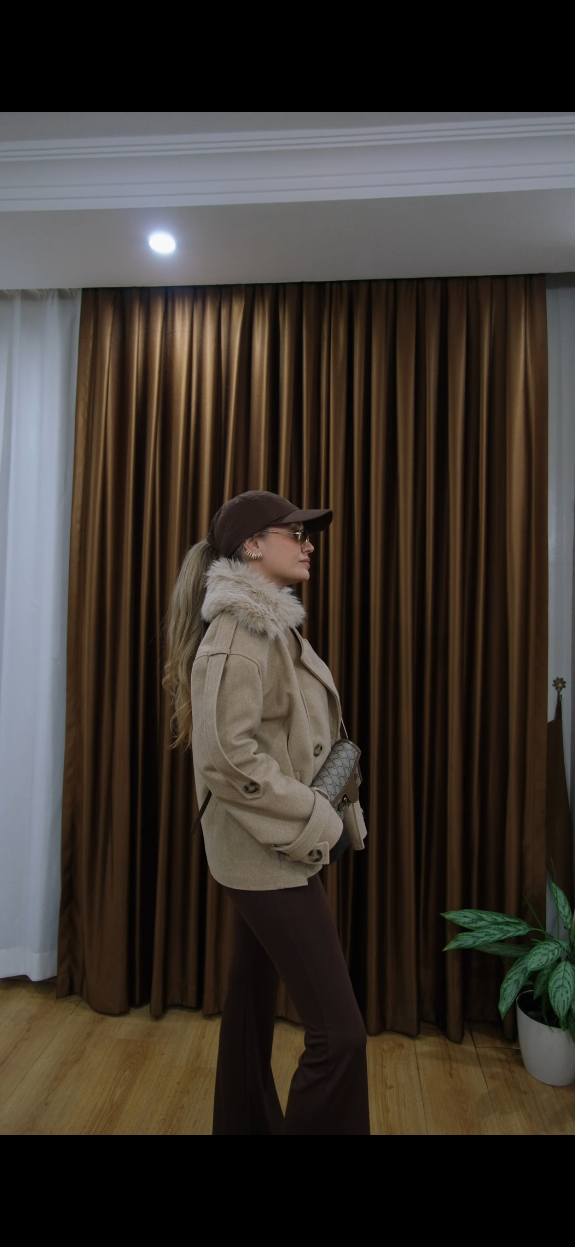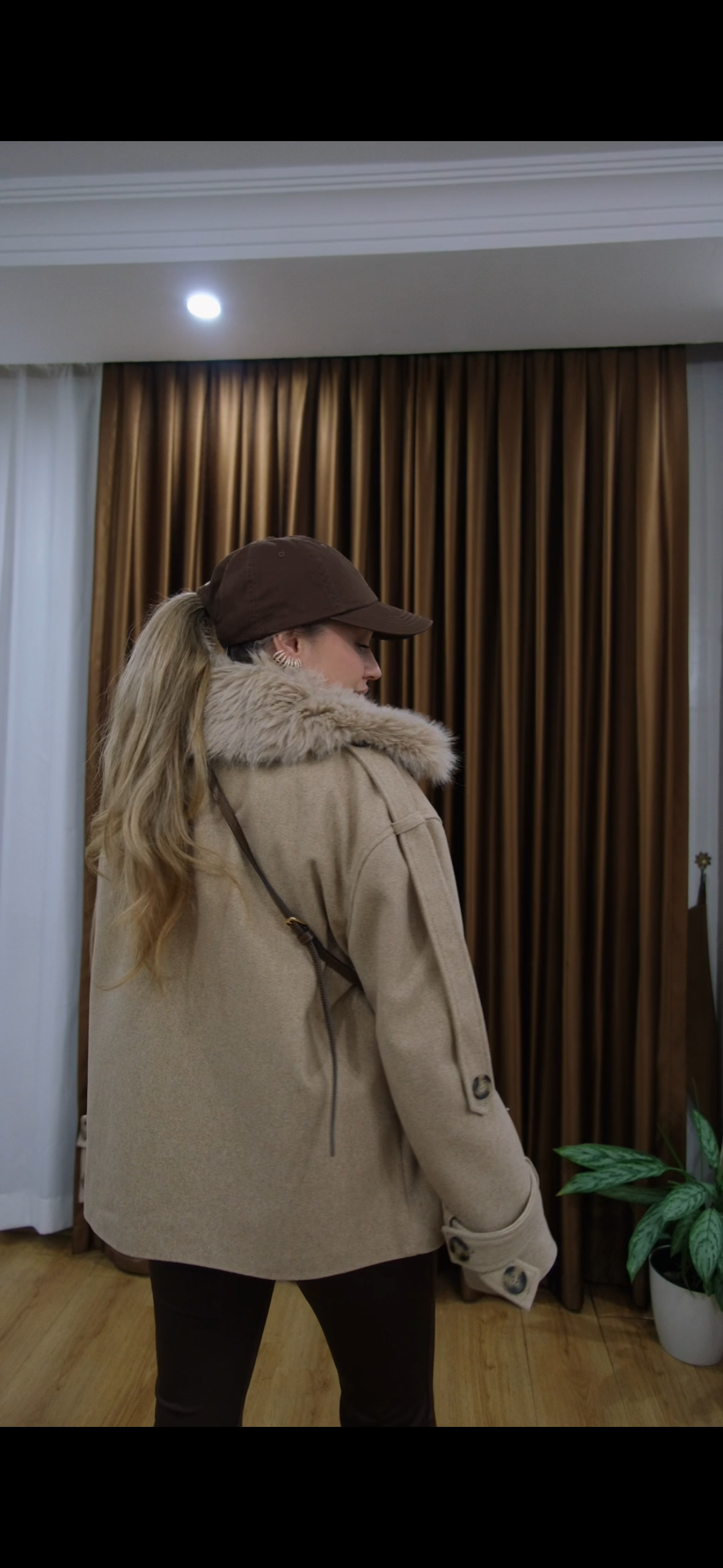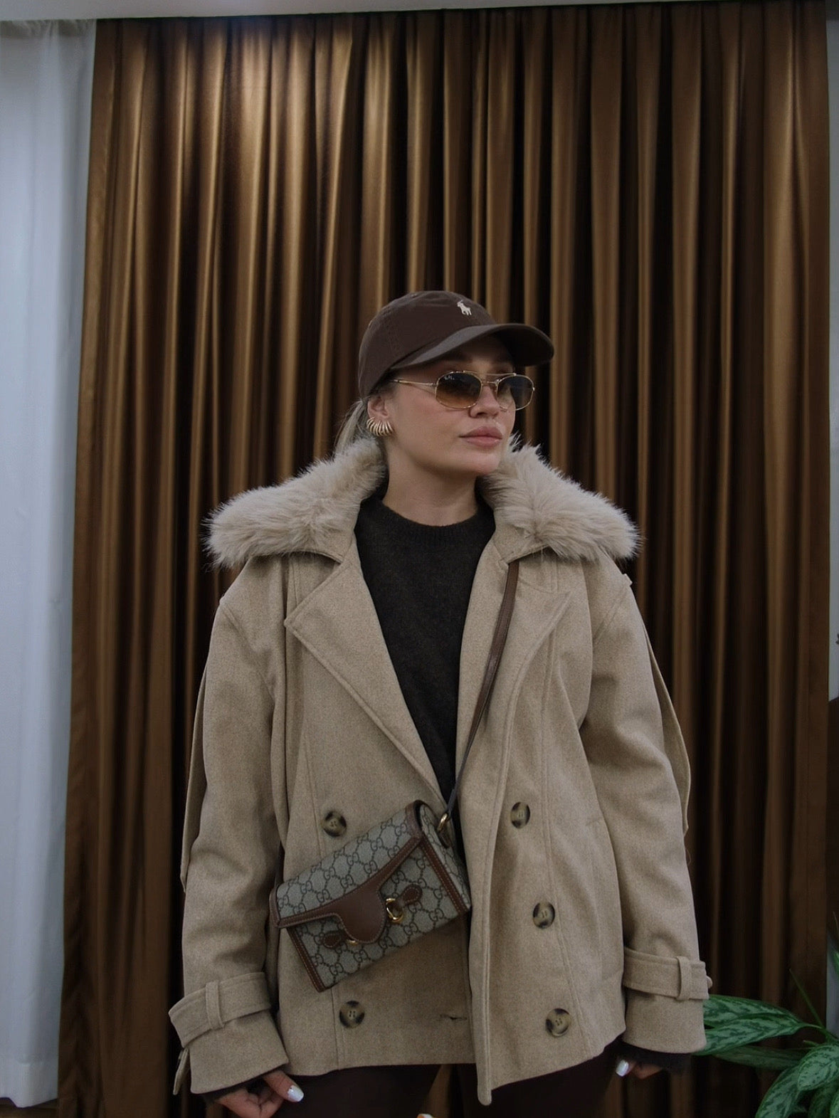 Kadın Bej Kürklü Kaban
